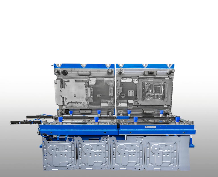 Montastampi dedicata a stampi plastica o pressofusione, personalizzabile: dimensioni, staffaggio e opzioni per movimenti speciali